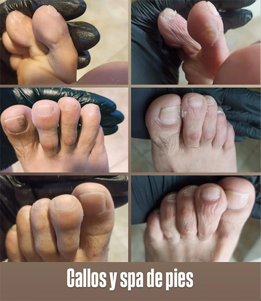 • Podología estética: Cuidado profesional para callos, uñas encarnadas y onicomicosis.