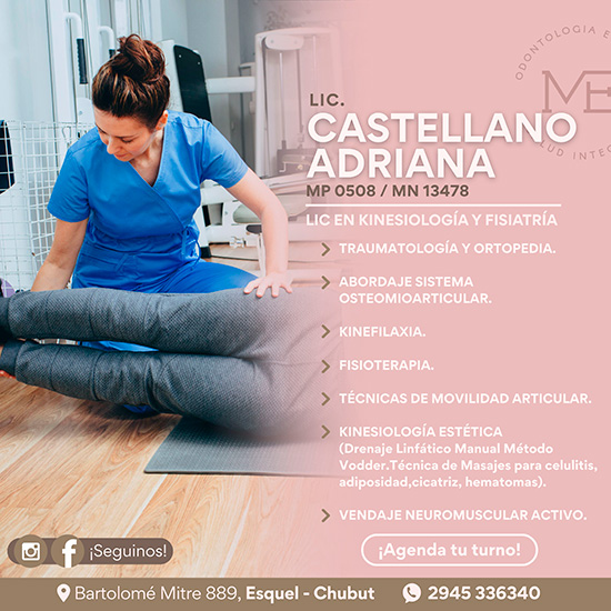 • Lic. Adriana Castellano – Kinesióloga y Fisiatra (M.P. 0508 – M.N. 13478)